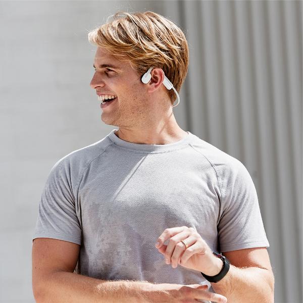 Inspirado en los deportistas, diseñado para todos. Nuestro diseño de oído abierto impulsado por tecnología de conducción ósea permite una conciencia total del entorno y una escucha cómoda y sin brotes.